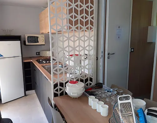 Description du bien Le mobil-home comprend : 1 séjour un coin cuisine 1 chambre avec 1 lit double 160cm*190cm (oreillers et...Référence : AN-00044Type de bien : Locatif (Mobil-home)pièces : 3 chambresNombres de personnes : 4Surface : 30,50m²Voir le détailGénéralTélévisionExtérieurParkingTerrasseTerrasse couverteCuisineMachine à caféMicro-ondesRéfrigérateurTables et chaisesSalle de BainSalle de Bain1WC séparéSalonCanapé convertibleCanapé -
