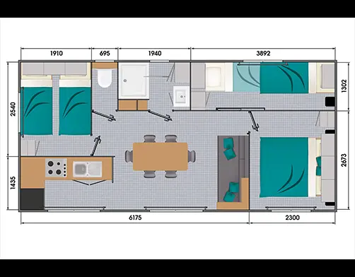 Mobil-home Grand Confort terrasse couverte 6 personnes